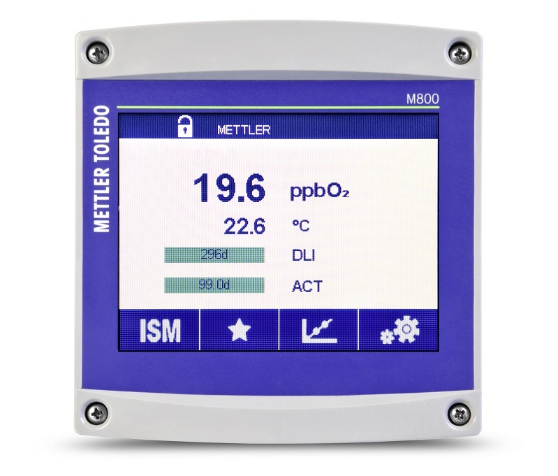 The M800 multi-parameter transmitter provides simultaneous monitoring of one, two or four in-line sensors. It offers measurement of pH/ORP, optical DO, amperometric oxygen (DO as well as O2 gas), conductivity, resistivity, TOC, dissolved ozone, flow and turbidity in pure water as well as process applications.